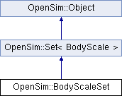 Inheritance diagram for OpenSim::BodyScaleSet:Public Member Functions | |