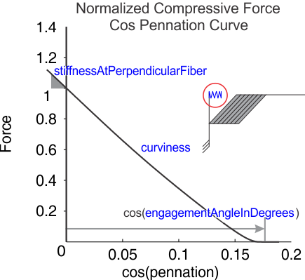 Constructs a C2 continuous compressive fiber force cos pennation curve using only the mandatory property, engagmentAngleInDegrees.